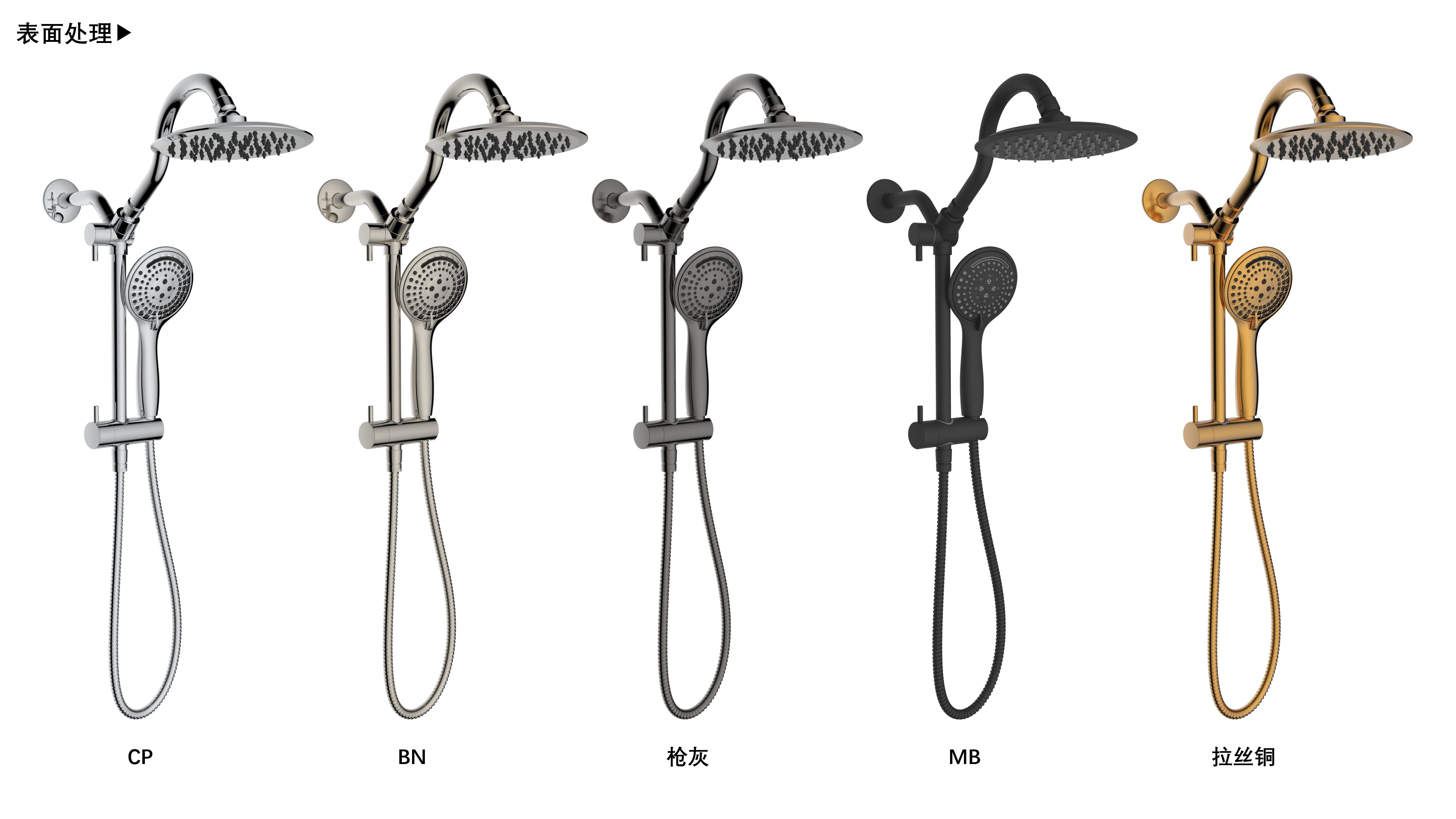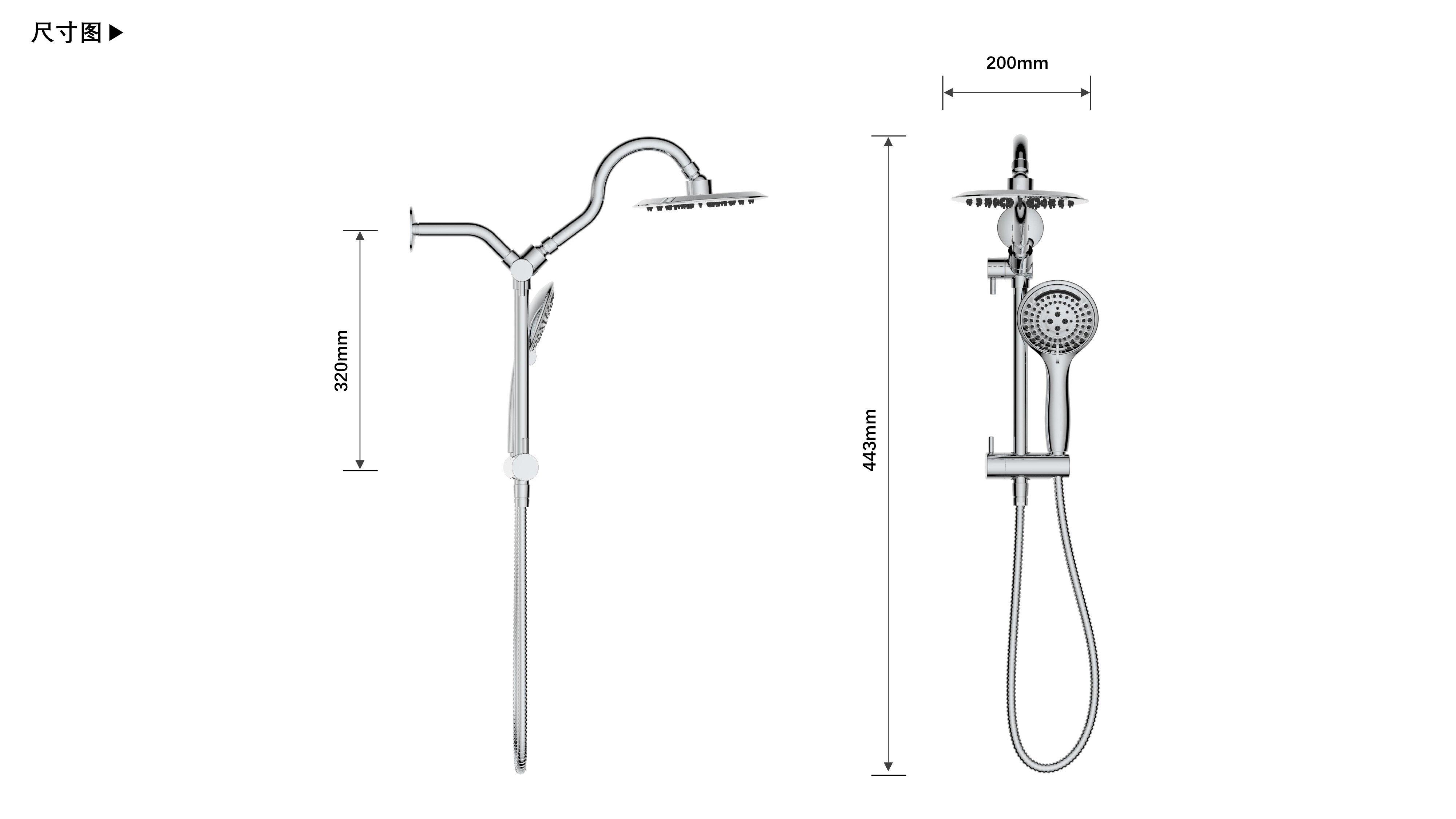 上出水彎管套裝;頂噴內(nèi)置球頭,可實(shí)現(xiàn)多角度旋轉(zhuǎn)調(diào)整;把手切換頂噴出水、花灑出水;轉(zhuǎn)動(dòng)把手調(diào)節(jié)滑座高低